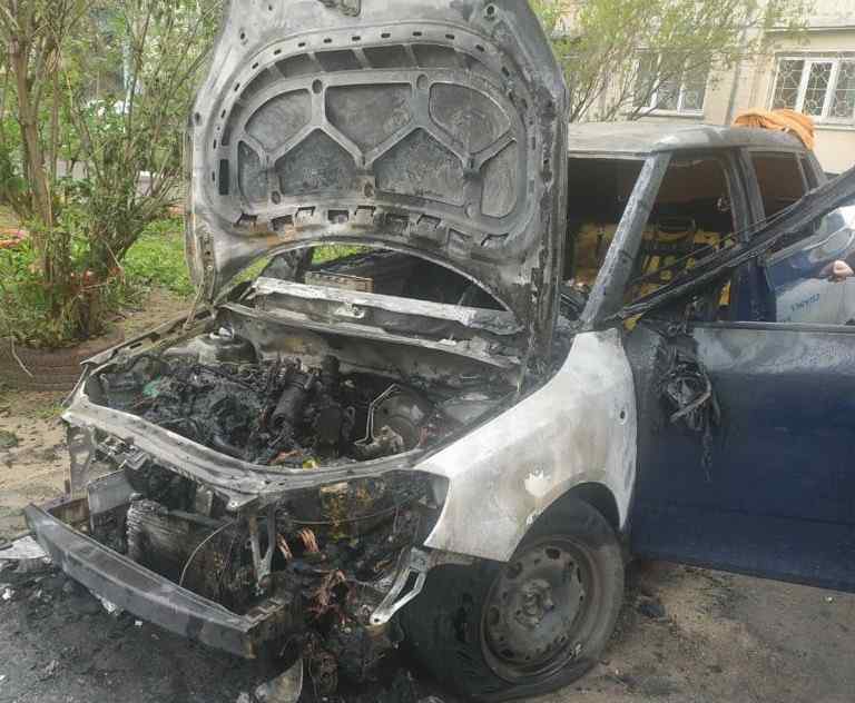 Ночью 25 апреля в одном из дворов на улице Марсельской сгорел автомобиль Skoda Fabia.