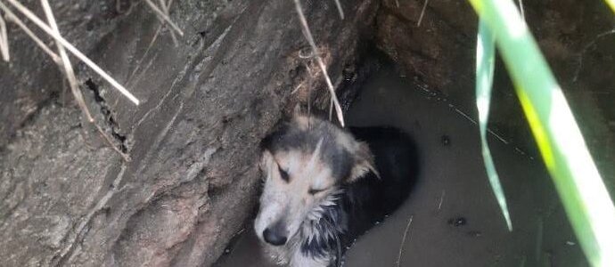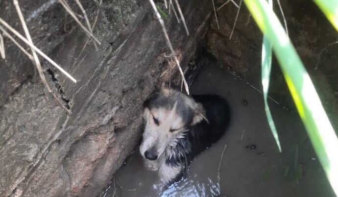 На улице Агрономической собака упала в глубокий каменный колодец. Местные жители сами не смогли достать ее оттуда и позвонили в службу спасения.