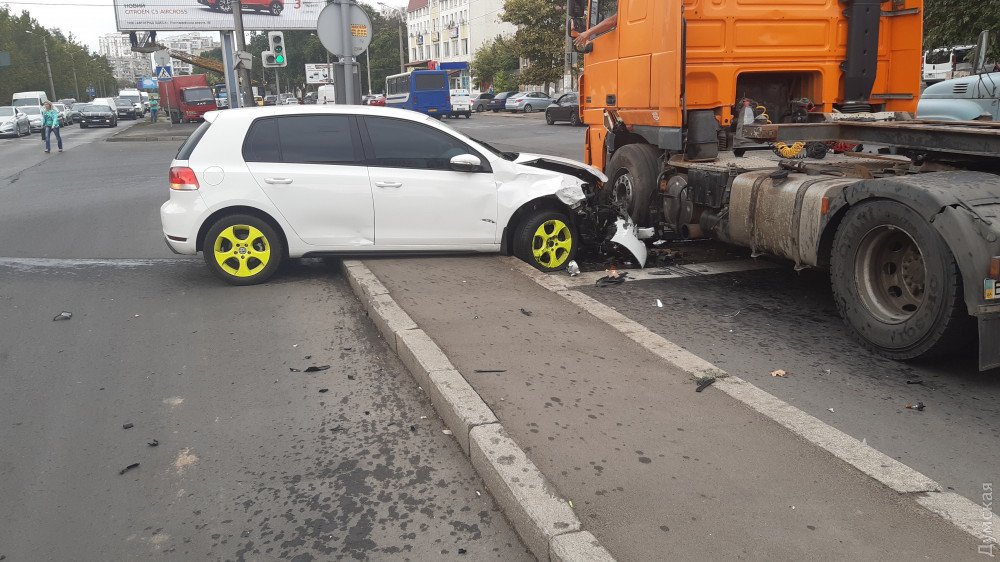 После удара «Фольксваген» отбросило на грузовик, который стоял в ожидании поворота на противоположной полосе.