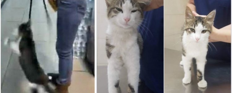 Котика, жестокое обращение с которым заметили вчера посетители супермаркета, забрали у нерадивой хозяйки.