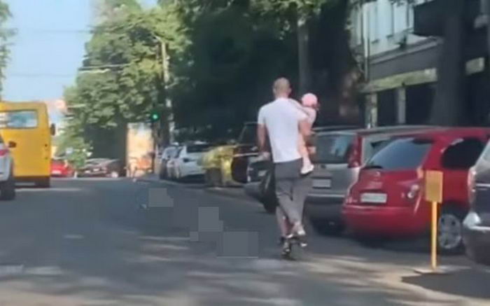 В центре Одессы на улице Бунина очевидцы заметили довольно опасную ситуацию с использованием арендованного электросамоката. По проезжей части ехал мужчина с маленьким ребенком на руках. При этом впереди на площадке электросамоката стоял кто-то еще – может супруга, а может ребенок постарше.