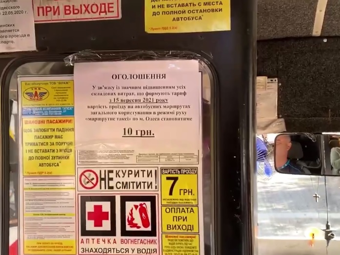 Объявления о подорожании стоимости проезда до десяти гривен появились в одесских маршрутках 7 сентября.