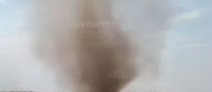Видео опубликовал Телеграм-канал Хydessa. На видео показано, как сильный ветер начал поднимать пыль и закручивать ее в спираль, которая затем поднялась на десятки метров над землей. Такое атмосферное явление также называют «пылевым дьяволом».