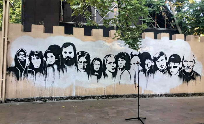 В Горсаду в Летнем театре на стене нарисовали портреты известных и не очень музыкантов, которые преждевременно ушли из жизни.