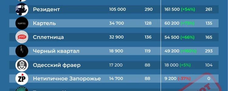 На данный момент из шести региональных каналов продолжает работать только Одесский фраер, который ресурсы Telemetr и Tgstat подозревают в накрутках. Остальные каналы сделали последний пост в июле 2021-го.