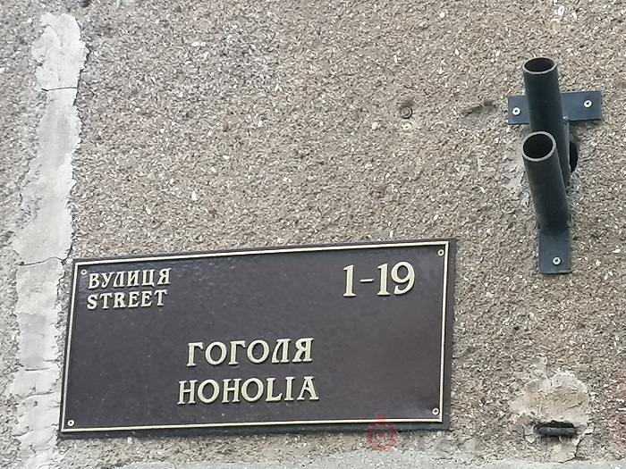 Примечательно, что на английском название улицы записали как Hoholia, а не как Gogоlia либо Gogol street.